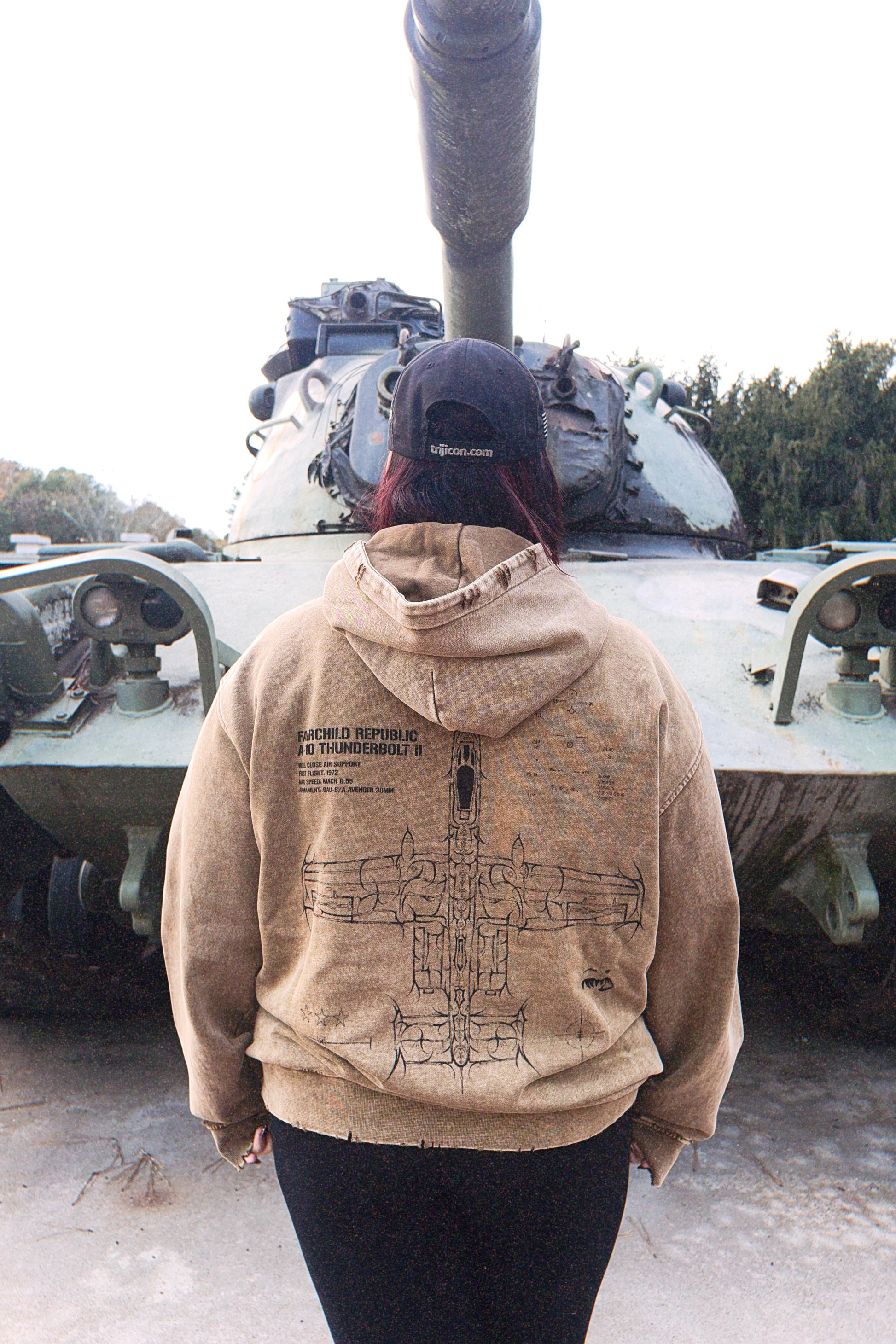 A-10 THUNDERBOLT II "WARTHOG" WASHED HOODIE - DESERT BROWN