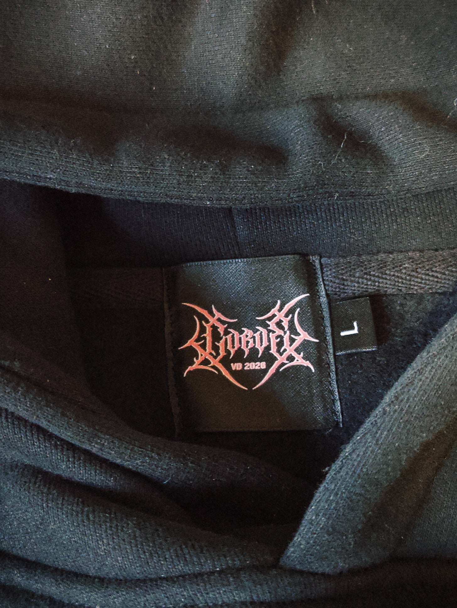 Includes a jagged heart graphic pierced by an AIM-174 arrow on the sleeve, plus a custom inner neck tag printed in pink reading “CURVE VD 2026”.